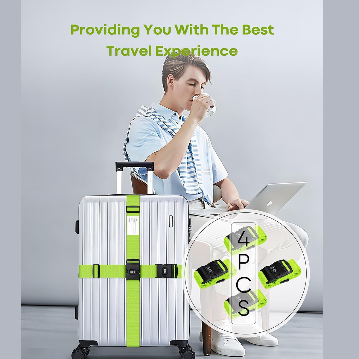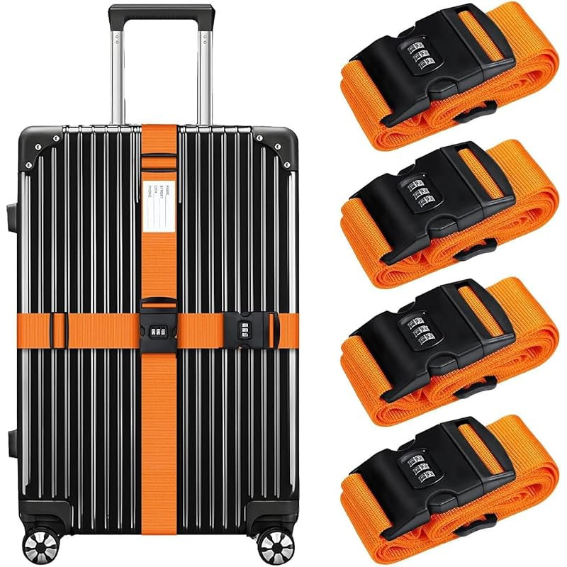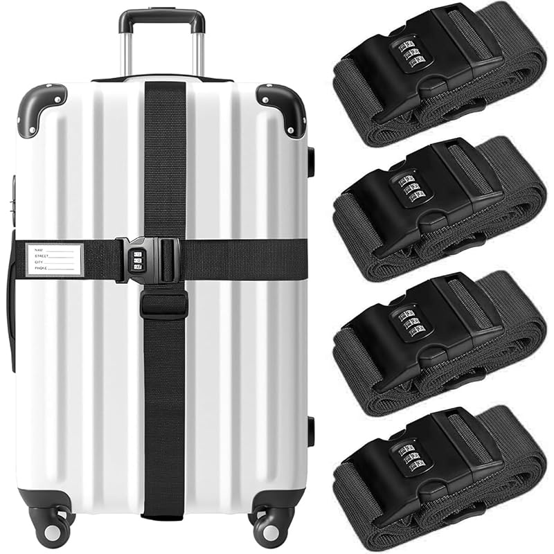 Set of 4 Luggage Straps Featuring a Combination Lock And ID Card